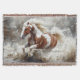 Ein dynamisches Gemälde eines durch Wasser laufenden Lackierpferdes, das die kraftvolle Bewegung und natürliche Schönheit dieses spirituellen Tieres in einer wilden Umgebung erfassen soll.