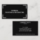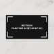 Ein Maler und Dekorator Visitenkarte in einem modernen und einfachen Design. Auf der Vorderseite der Karte befindet sich Ihr Firmenname mit einem minimalistischen Eckrahmen auf schwarzem Hintergrund. Auf der Rückseite finden Sie Namen und Kontaktdaten sowie eine Beschreibung der Dienstleistungen oder ein Slogan, um zu kommunizieren, was Ihr Unternehmen von den Mitbewerbern unterscheidet. Eine berufliche Visitenkarte für ein Gemälde- und Dekorationsunternehmen oder einen Bauunternehmer.