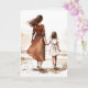 Mama und Tochter, die auf dem Strandgemälde in Aquarellwirkung spazieren.