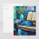 Malerei einer Katze Schlafen auf Piano Postkarte