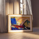 Malerei mit Troika (1911) von Wassily Kandinsky ist ein abstraktes Stück, das die Dynamik einer Troika einfängt, einem traditionellen russischen Schlitten, der von drei Pferden gezeichnet wird. Durch ausdrucksvolles Pinselwerk nutzt Kandinsky fette, wirbelnde Formen und lebhafte Farben, um die Bewegung und den Rhythmus der Troika in Bewegung zu erwecken. Die Komposition verbindet Elemente der Abstraktion mit einem Hauch von Vernunft, da die chaotischen, aber harmonischen Formen sowohl ein Gefühl der Geschwindigkeit als auch die zugrunde liegende kulturelle Bedeutung der Troika im russischen Leben vermitteln. Dieses Gemälde spiegelt Kandinskys Erkundung von Farbe, Form und Emotion wider und ist ein wichtiges Beispiel für seinen frühen Übergang zur vollständigen Abstraktion. Verwenden Sie die Entwurfstools, um einen benutzerdefinierten Text hinzuzufügen oder das Bild zu personalisieren.