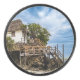 Malerisches Haus auf einem tropischen Korallenriff Eishockey Puck