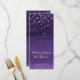 Schöne, dunkelblaue lila Wasserfarbenwäsche bemalte Himmel mit einem grafischen Stern Funkeln Overlay Hochzeitsdinner Menü oder besondere Veranstaltung Menü. Bearbeiten Sie dieses 4-Gang-Menü mit Ihren eigenen Worten. Einfache aber moderne und sternförmige Speisekarte im Stil des Nachthimmels. Ideal für Hochzeiten unter freiem Himmel, Weihnachtsfeiern oder Sternenveranstaltungen in lila und weiß. Design und Kunstwerke von Sarah Trett.