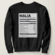 Malia Ernährungsinformation Problem lösen hartes W Sweatshirt