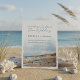 Coastal California Strand Thema Hochzeit Einladung bietet ein Aquarellbild von Küstenvögeln spielen auf einem Malibu, California Strand (Surfrider Beach) und moderne, handgeschriebene Akzente. Die Rückseite ist blau. Ideal für küstennahe, nautische und tropische Hochzeiten in Urlaubsort. Teil meiner Hochzeitskollektion "Malibu California". Kunstwerk von KL Stock.