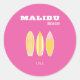 Malibu, Malibu Beach, Travel Art, Preppy, Pink Runder Aufkleber