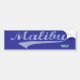 Malibu in einem angesagten stilvollen beunruhigten Swashtext. Sie können dem entspannten Kalifornien-Strandparadies in diesem ursprünglichen Entwurfs-Autoaufkleber praktisch glauben. Kalifornischer Lebensstil eingekapselt in einem Entwurf. Diese Swashart in taubenblauem lesenmalibu mit Ozeanblauhintergrund summiert einfach die entspannte Haltung und die athletischen Körper auf, die Strahlen auf einem SoCal Strand fangen.