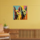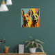 Die Grafik zeigt einen Malinois-Hund im Pop-Kunststil, der seine Energie und sein Charisma durch kühne Farben einfängt