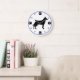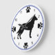 Eine Hundeschlittenuhr mit der Silhouette eines belgischen Malinois, mit Pfotendrucken, die die Quartiere markieren.