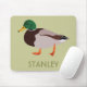 Erstellen Sie ein personalisiertes Geschenk, das sich perfekt für Vogelliebhaber eignet, wenn Sie ihren Namen zu diesem Mauspad hinzufügen. Es zeigt eine realistische Darstellung einer männlichen Mallardente in grün und braun vor einem blassgrünen Hintergrund mit einem Namen oder einem anderen Text bei der Koordination der olivgrünen Schrift.