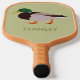 Erstellen Sie ein personalisiertes Geschenk, das perfekt für Pickleyspieler ist, die auch Vogelliebhaber sind, wenn Sie ihren Namen zu diesem Pickleball-Paddel hinzufügen. Es zeigt eine realistische Darstellung einer männlichen Mallardente in grün und braun vor einem blassgrünen Hintergrund mit einem Namen oder einem anderen Text bei der Koordination der olivgrünen Schrift. Die Rückseite weist ein entsprechendes Muster von Enten und Streifen auf.
