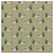 Erstelle Geschenke für Vogelliebhaber mit diesem gemusterten Stoff. Es zeigt realistische Stildarstellungen von Mallard Encks Set vor einem olivgrünen Hintergrund mit einem einfachen Streifen Muster.