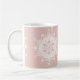 Dieses weiße Mandala sitzt auf einem staubigen rosa Hintergrund. Die Farben sind sehr dezent und ruhig. Teil der Sammlung Fenten Mandala.