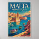 Malta Coast Illustration Travel Art Vintage Poster