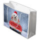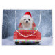 Malteser Hund im Schnee sitzend im Weihnachtswagen Große Geschenktüte