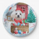 Malteser Hund im Schnee Weihnachtshaus Pappteller
