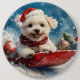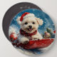 Malteser Hund in Sledge Lass es Schnee Weihnachten Button