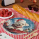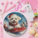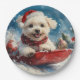 Malteser Hund in Sledge Lass es Schnee Weihnachten Pappteller