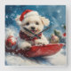 Malteser Hund in Sledge Lass es Schnee Weihnachten Quadratische Wanduhr