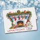 Auf der Vorderseite dieser Weihnachtsgrüßkarte steht ein hübscher, weißer maltesischer Hund, der eine rot-weiße Weihnachtsmannmütze trägt. Der Hund liegt vor einem dekorierten Kamin, der erwartungsgemäß für den Weihnachtsmann gewartet ist. Im roten Text unten steht "Gewartet für den Weihnachtsmann". Der Text ist anpassbar, wie auch der gesamte Insider-Text, sodass Sie ihn sagen lassen können, was Sie wollen. Niedlich! Sehen Sie mehr maltesische Bilder, zusammen mit Dutzenden anderer Hundefutter, im Dog Village.