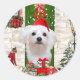 Maltesischer Hund Weihnachten sitzend draußen geschmückt Zuhause mit Weihnachtskranz, Weihnachtsbaum ist eine perfekte Weihnachtsgeschenkidee für Hundefreunde.