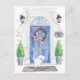Mit unserer stilvollen Ankündigung kündigen Sie Ihre neue Adresse an: maltesische, blaue Haustür, Begrüßungstür, Schild mit Schiefer, Topiaries und ein Set mit Blumenkranz auf grauem Backstein.