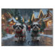 This festive design captures the joyful spirit of the holiday season, featuring an adorable dogs.Nestled in a winter wonderland, complete with a decorated Christmas tree, and beautifully wrapped presents. Snowflakes gently fall, adding a magical touch to the scene, while the vibrant colors of the holiday decorations create a warm and cheerful atmosphere.