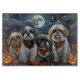 Entfesseln Sie den unheimlichen Geist mit diesem unheimlichen Halloween-Design, das eine Hundepackung unter einem dunklen, mondbeleuchteten Himmel bietet, umgeben von fliegenden Fledermäusen und glühenden Kürbissen. Ideal für diejenigen, die mit ihren wütenden Freunden eine Touch voller Furcht Liebe haben!