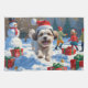 Malti Tzu läuft im Schnee mit Weihnachtshut Geschirrtuch