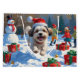 Ein spielerischer Malti Tzu läuft fröhlich durch die schneebedeckte Winterszene und trägt einen festlichen roten Weihnachtshut. Mit seinem flauschigen Mantel und seiner fröhlichen Persönlichkeit, erweckt dieses Design die Wärme der Ferien und den Charme dieser zauberhaften Mischrasse, die saisonale Magie mit kaninischer Freude verbindet.
