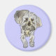 Diese Grafik zeigt einen niedlichen und flauschigen Maltipoo oder Maltesisch und Poodle gemischten Welpen mit glänzenden braunen Augen.