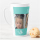 Engel der Mama 3 Foto Latte Tasse. Weiße Blume. Türkisfarbener Hintergrund FotoCollage.