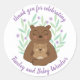 Ein süß illustrierter Mama- und Babybär flankiert von minzgrünen Blätter und lila Blume, um auf diesem individuellen Babyduschaufkleber, der für jedes Party geeignet ist, fröhlich auszusehen.