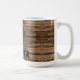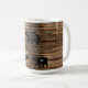 Mama Bear und Cubs Kaffee Tasse mit Strohholz Hintergrund. Die Naben können mit Ihren Kindernamen individuell angepasst werden.
