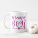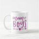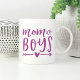 Bist du Mutter einer Jungenbrühe? Feiern Sie mit dieser niedlichen Tasse den Status Ihrer Jungen Mama mit dem Sprichwort "Mama of boys" in violetter lila Handschrift, die Typografie mit Herz und Pfeil illustriert. Macht ein perfektes Muttertagsgeschenk oder kleine Geschenk für eine geliebte Mutter ihrer Söhne.