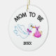 Mama mit einem Storch, der ein Baby in einer rosa Decke trägt.
