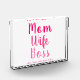 Mama Ehefrau Boss Farbverlauf rosa benutzerdefinierte Skripttext niedlich moderne moderne modische Pinsel Skript cool Acryl dekorative Foto Block. Vollständig anpassbarer rosa Text, klarer Hintergrund. Großartiges Geschenk für Mama zur Mama für den Muttertag oder ihren Geburtstag.