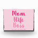 Mama Ehefrau Boss Farbverlauf rosa benutzerdefinierte Skripttext niedlich moderne moderne modische Pinsel Skript cool Acryl dekorative Foto Block. Vollständig anpassbarer rosa Text, hellrosa Hintergrund. Großartiges Geschenk für Mama zur Mama für den Muttertag oder ihren Geburtstag.