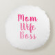 Mama Ehefrau Chef rosa und weiß benutzerdefinierte Skripttext niedlich moderne stilvolle Round Kissen. Vollständig anpassbarer rosa Text, weißer Hintergrund. Großartiges Geschenk für Mama zur Mama für den Muttertag oder ihren Geburtstag.