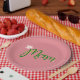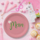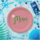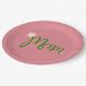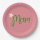 Kleine Frühlingsblumen und Blätter mit dem Text "Mama" werden auf einem Erdbeerrosa Hintergrund hervorgehoben. Klicken Sie auf "Anpassen", um den Hintergrund auf eine andere Farbe zu ändern, falls gewünscht.