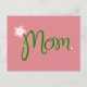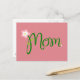 Kleine Frühlingsblumen und Blätter mit dem Text "Mama" werden auf einem Erdbeerrosa Hintergrund hervorgehoben. Klicken Sie auf "Anpassen", um den Hintergrund auf eine andere Farbe zu ändern, falls gewünscht.