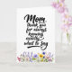 Diese charmante und sentimentale Karte enthält den anerkennenden Ausdruck "Mom, thanks for always knowing exactly what to say" (Mama, danke, dass du immer genau weißt, was du sagen musst), geschrieben in einer eleganten modernen Schrift. Das Design wird von einer schön detaillierten Reihe handgemalter Aquarell-Wildblumen verankert, die am unteren Rand blühen und einen weichen, natürlichen und künstlerischen Look bieten, der die durchdachte Botschaft perfekt ergänzt.