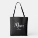 Schwarz-weiße Mama Etablierte Junge Mutter Geschenk - Minimal Elegant Script Mama Tote Bag. Feiern Sie Mütter und Mama's to be Mother am Tag mit diesem schlichten und eleganten Taschendesign, in dem das Wort "Mama" in spielerischem Schriftzeichen auf jeder Seite für ein spielerisches Ambiente dargestellt wird, und mit einem "Est.-Jahr" unter der Haustür, als Sie eine Mutter wurden. Sie können mehr Daten für jedes Kind hinzufügen und auch "Mama" für Mama, Mama, Mam, Mama oder jeden Namen ändern, den Sie bevorzugen.
