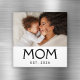 Mutter Established Foto-Geschenk - Minimales elegantes schwarzes klassisches Mutter-Typografie - Geben Sie Mama die Anerkennung, die sie verdient, mit diesem lustigen Schwarz-Weiß-Fotomagneten. Das Wort "MOM" erscheint in klassischer schwarzer Typografie auf weißem Hintergrund, mit den Worten "EST." ("Established") und dem Jahr darunter. Ersetzen Sie das Beispiel-Foto einfach durch Ihr Lieblingsfoto von Mama und Baby. Bearbeiten Sie den Text, um ein oder mehrere Geburtsdaten anzuzeigen. Andere kurze Varianten von "Mutter", wie "Mum" oder "Mama", können ersetzt werden. Ein tolles Geschenk zum Muttertag oder zum Geburtstag der Mutter!
