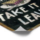 © Pela Studio / Wilder Apple. Ein schwarz-weißes Retro-Schild mit einem Zitat über Mama's Küche. Heute ist das Besondere: Nehmen Sie es oder Verlass es!