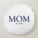 Mama marineblau und weiß getragenes Datum niedliches Rundkissen. Minimalistisches, modernes Design mit individuellem Text