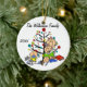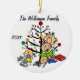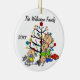 Ein hübscher, runder Keramik-Sake Weihnachtsschmuck umfasst eine Strichmännchen-Familie mit einer Mutter, einem Mädchen, einem Kleinkind, einem schlafenden Baby und einer Familienkatze vor einem dekorierten Weihnachtsbaum mit Bereichen, die Sie mit Ihrem Familiennamen und dem laufenden Jahr anpassen können! Dieses niedliche Urlaubssendekor ist ein großes Geschenk für die junge Familie, um ein besonderes Jahr zu feiern!