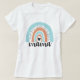 Regenbogen mit blau und pfirsichfarben. Mit Polka-Punkten und einem Herz, um die Dekoration zu diesem einfachen Regenbogen hinzuzufügen.