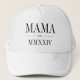 Ein moderner, weißer LKW-Hut, um eine schicke junge Mutter zu feiern. Dieses minimalistische Design zeichnet sich durch "Mama" aus, oder durch die Wahl des Mami-Spitznamen in schwarzen Serifenschrift. Mit dem Jahr, in dem sie zu einer Mutter wurde, in eleganten römischen Ziffern für eine schicke Touch.