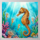 Eine süße und sanfte Illustration mit einer Mama-Seepferdchen und ihrem Nachwuchs, die einen friedlichen Moment in der gemütlichen Welt von Ivory Nest einfängt.